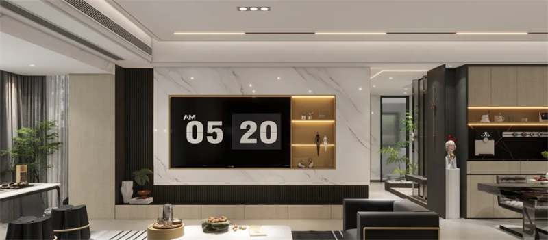 客廳設(shè)計(jì)拒絕傳統(tǒng)單一,采用懸浮柜+半開放柜組合的方式,構(gòu)建客廳收納美學(xué)。半開放柜可陳列雜志書籍,可展示心愛手辦、潮玩,賦予空間N+1的功能,每一處細(xì)節(jié)都精致熨帖。