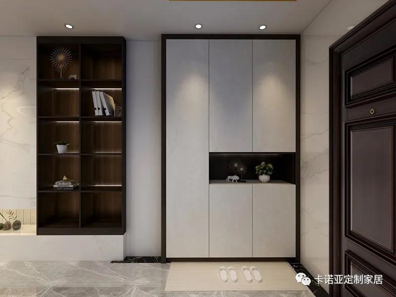 柜體采用三段式設計,造型整體,收納容量大,中間開放格放置綠植、飾品,溫柔的迎接歸家的人。