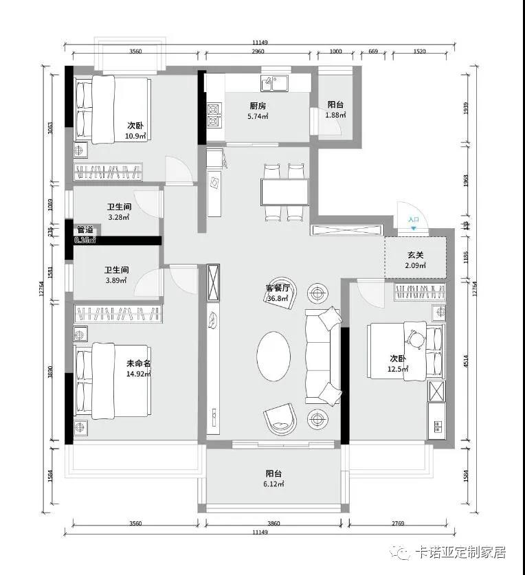 采用圍繞的布局方式滿足儲(chǔ)物和居住的同時(shí)將中間大面積的空間讓出來可以供孩子活動(dòng)