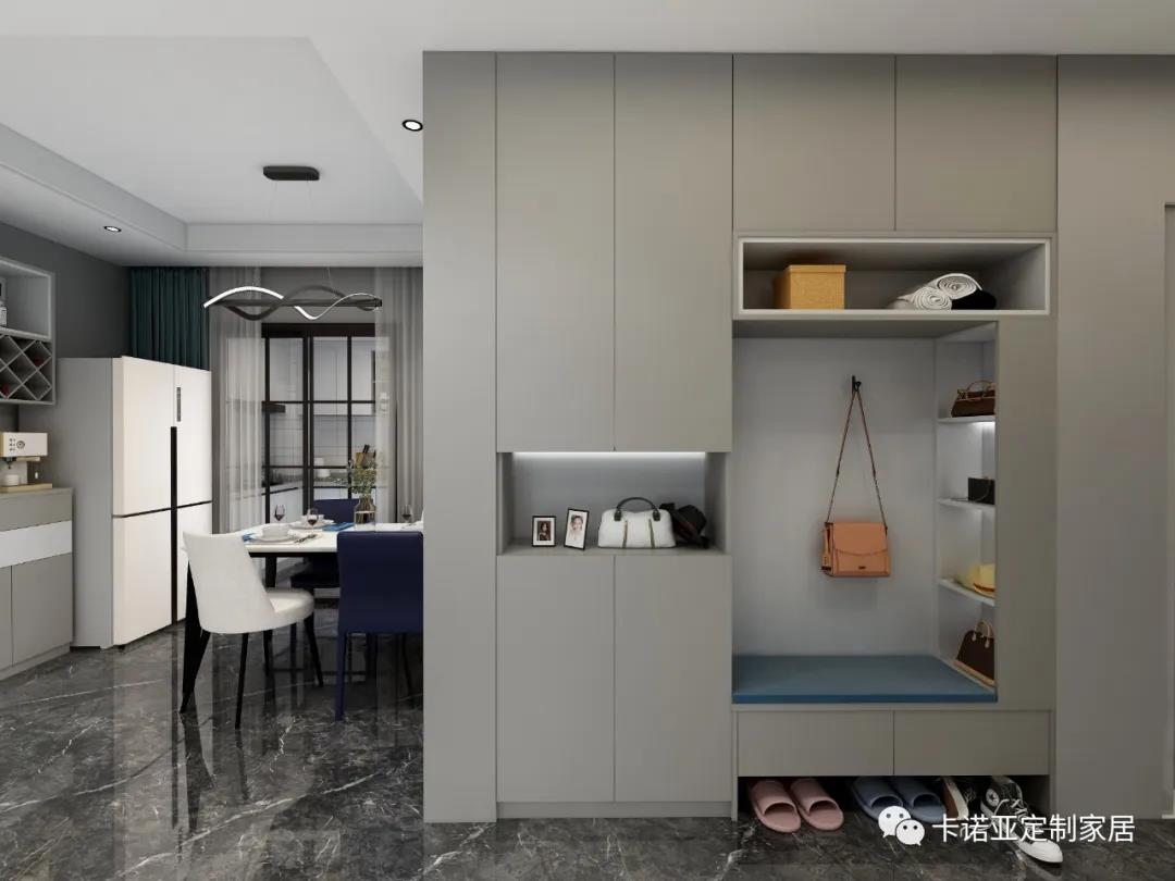 加入“俄羅斯方塊”造型的入戶柜將設(shè)計(jì)巧思隱于線面的細(xì)節(jié)里美觀方便的同時(shí)還具備超強(qiáng)收納功能