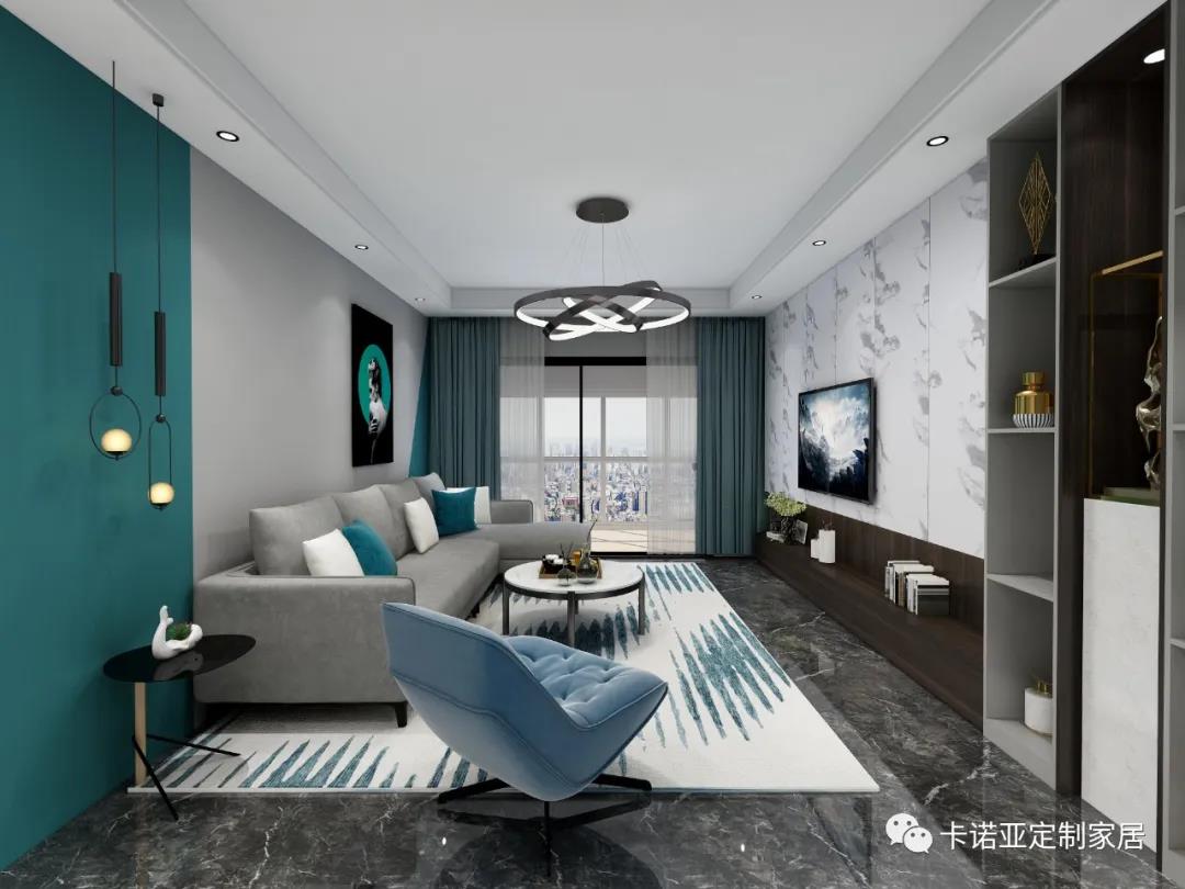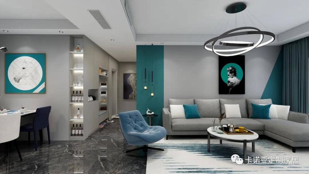 客廳空間點(diǎn)綴藍(lán)與白