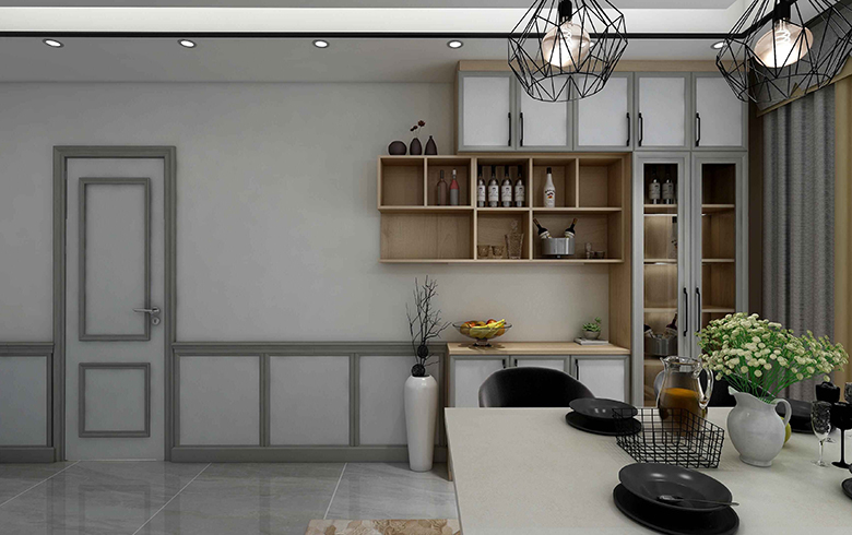 墻裙式護墻系統由印象白+深灰風之谷組合而成,簡約經典的灰白色搭配,帶來寧靜優雅的氛圍。