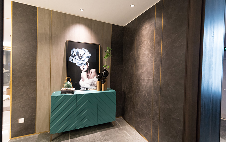 門廳護墻系統徜徉在經典與現代之間,行走在時尚的天平上。金屬黃銅線裝飾與木質天然紋理渾然一體,彰顯著華貴的生活氣息,低調而奢華。