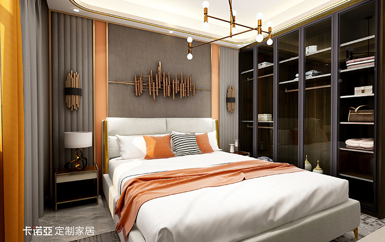 高級黑與高級灰做為表現(xiàn),黑白的對比鮮明,總給空間一種大大方方的利落感覺。選用帶有高級感愛馬仕橙,黑色及碳灰色,來演繹一種“低調(diào)的奢華”,令空間質(zhì)感更為飽滿。