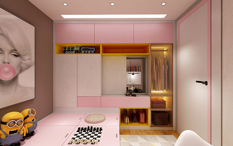 本設計屬于本人原創設計,采用本公司卡諾亞最新的產品搭與最熱門的產品進行設計,客餐廳,主臥柜體采用熱門產品御品木搭與新品321201進行搭配,用沉穩高雅的御品木體現了房子主人對生活的追求,對事業的沉穩。用清新又高端的321201來體現房子主人對美好生活的向往,類似于天然石的紋路或龍的鱗甲,有著一種高端的品質生活。二者搭配再用暖光進行照射能夠營造出一種和諧溫馨的環境,能夠促進人與人之間的感情,女孩房/女孩功能房柜體顏色采用印象白外蓋門采用卡諾亞新產品粉紅佳人與321201作們板進行搭配,體現出女孩純潔的心與少女心,女孩功能房還帶有一點新品活力橙作為點綴,從而體現女孩對美的追求。