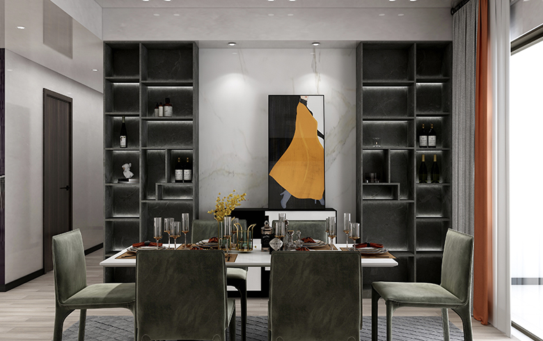 本案為碧桂園·天薈265平大平層的現(xiàn)代極簡風格案例?,F(xiàn)代派的極簡主義在滿足功能的基礎(chǔ)上,不斷的做減法, 反對形式化和裝飾化,拋棄不必要的細節(jié)而強調(diào)物體本身的美,主張功能化和理性化的設(shè)計理念,加上對材料和色彩的考究、運用,在設(shè)計師的偏執(zhí)喜好里,掀起對“黑的溺愛”的藝術(shù)思潮。
