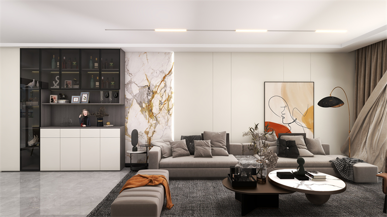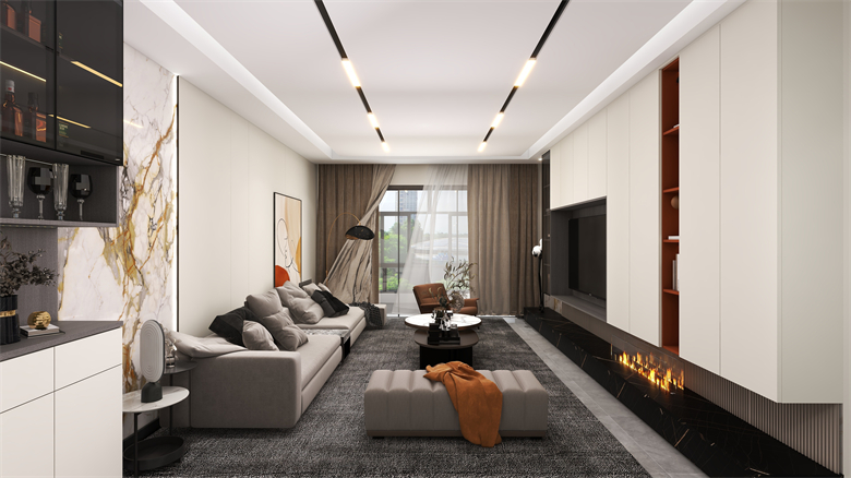本案以現(xiàn)代簡約風(fēng)格出發(fā),整個(gè)空間以純白色的空間感搭配上舒適自然的家居布置,橙色的細(xì)節(jié)點(diǎn)綴讓空間顯得更加高級大氣,營造出一種輕松自然的家居氛圍感。