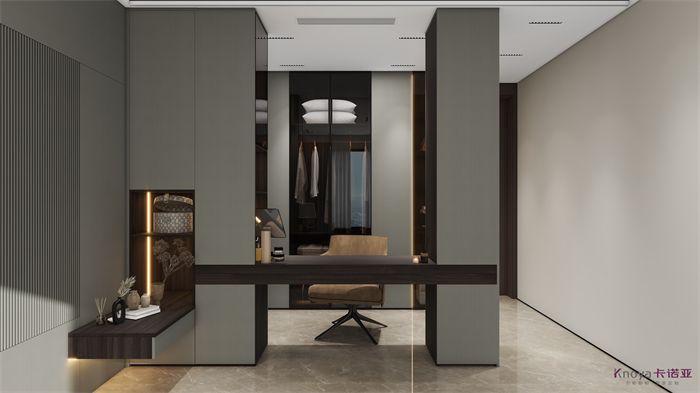 意式極簡既具有意大利文藝復(fù)興時期的意蘊,奢華高貴,同時又兼具現(xiàn)代感的干練高級,深棕色的木飾面搭配原木色穿插營造的高級感貫穿整個空間,利用材質(zhì)的對比與反差加強空間的質(zhì)感感受。優(yōu)雅與深邃的配色讓空間散發(fā)出靜謐感,簡約的線條在訴說永恒的經(jīng)典,脫離一切的浮華與煩躁。身居清雅地,心無車馬喧,從生活的本質(zhì)出發(fā),讓它靜下來,感受快節(jié)奏都市生活背后的安靜與寧靜。