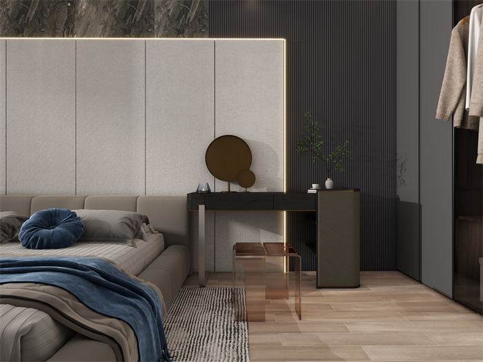 設計理念:譽添有榮譽稱贊之稱和精致優雅之意。以簡約為主通過軟裝與巖板搭配,顯示一種高品質的生活方式。