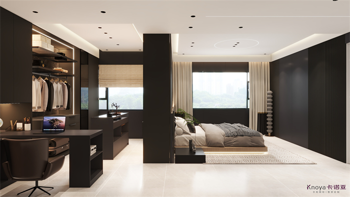 作品簡介:整體以現代為主,入戶區域和酒水吧區域做環繞型設計,整體更通透空間,客廳背景墻運用了疊級的手法弱化承重柱,沙發背景同樣采用疊級做到呼應的設計,主臥拆除隔壁臥室做主臥步入式衣帽間,增加了主臥的靈動以及空間,兒童房采用類似榻榻米手法設計,整體做收納儲物學習娛樂空間,廚房做開放式廚房,整體色系為黑灰,天花吊頂采用無主燈加智能燈光,整體空間和氛圍舒適度拉滿。