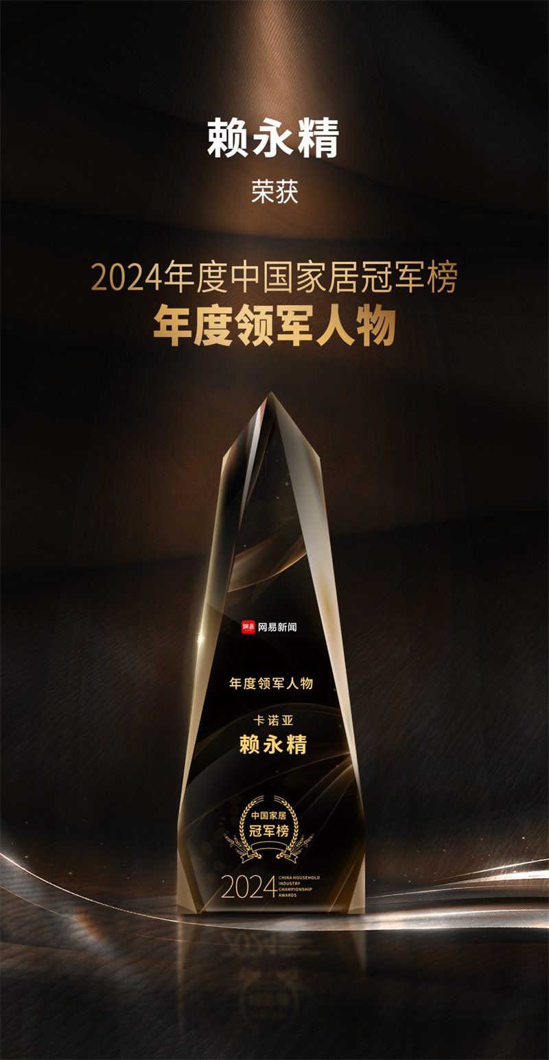 2月10日,網(wǎng)易“2024年度中國家居冠軍榜”重磅發(fā)布,以榮譽致敬榜樣,匯聚行業(yè)力量,助力家居產(chǎn)業(yè)蓬勃發(fā)展。卡諾亞憑借引領(lǐng)行業(yè)創(chuàng)變的輕高定品牌影響力及差異化的臥室系統(tǒng),從眾多品牌中脫穎而出,榮膺“匠心質(zhì)造品牌”獎項,以雄厚品牌勢能,助力推動美好生活方式定制。同時,卡諾亞董事兼副總裁賴永精以其對行業(yè)的卓越貢獻(xiàn),榮獲“年度領(lǐng)軍人物”稱號。