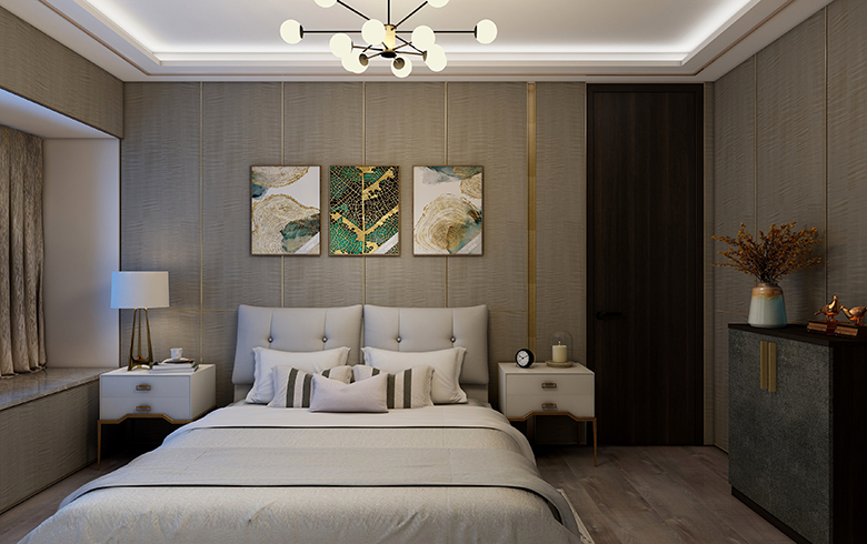 在裝修臥室的時候,應盡量設計簡單的墻面造型,不能過于復雜,否則很容易令人產生一種空間壓抑感。在墻面色調選擇的時候,可以根據個人喜好和裝修風格進行選擇。一般來說,使用米色、淺綠、淺灰能夠幫助人們的睡眠和休息。