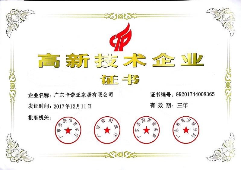 卡諾亞作為中國定制家居領軍品牌,獲得的含金量極高的榮譽證書眾多,包括國家高新技術企業、中國環境標志產品認證證書、全國工商聯家具裝飾業商會定制家居專業委員會執行會長、廣東省定制家居協會成員單位、廣東衣柜行業協會成員單位、2019全屋定制家具十大品牌等。