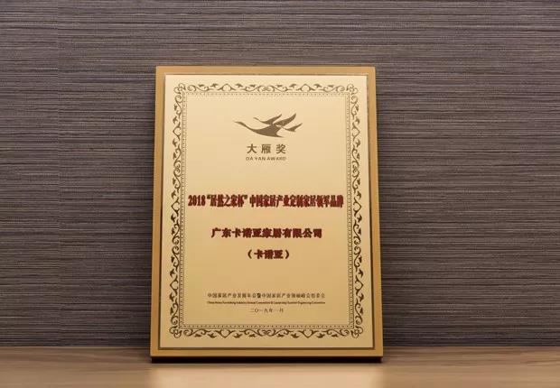 卡諾亞斬獲“大雁獎·2018中國家居產業定制家居領軍品牌”殊榮